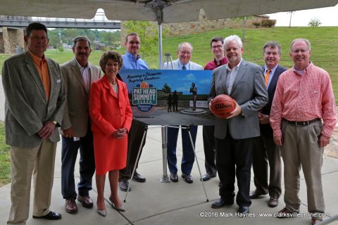 Clarksville, TN – Civic leaders gathered Thursday to announce a major step toward the goal of honoring Pat Head Summitt, hometown hero and legendary University of Tennessee women’s basketball coach, with a statue and interpretative display along the Cumberland River in Clarksville.