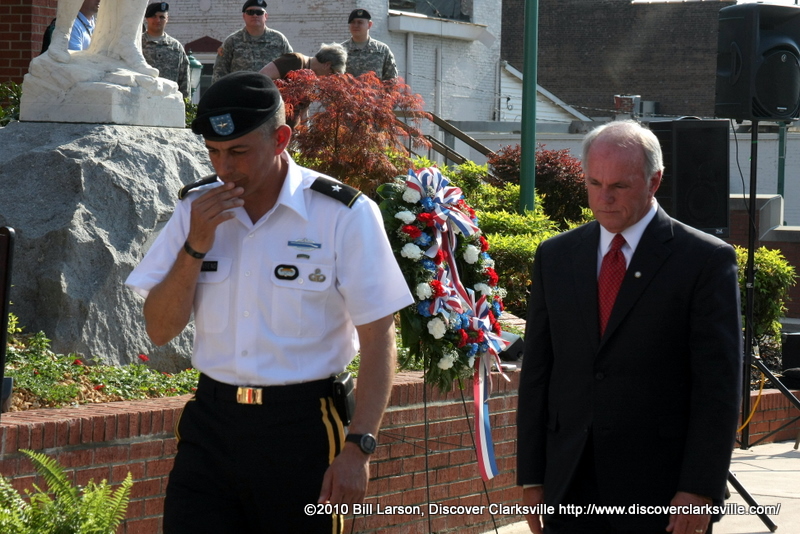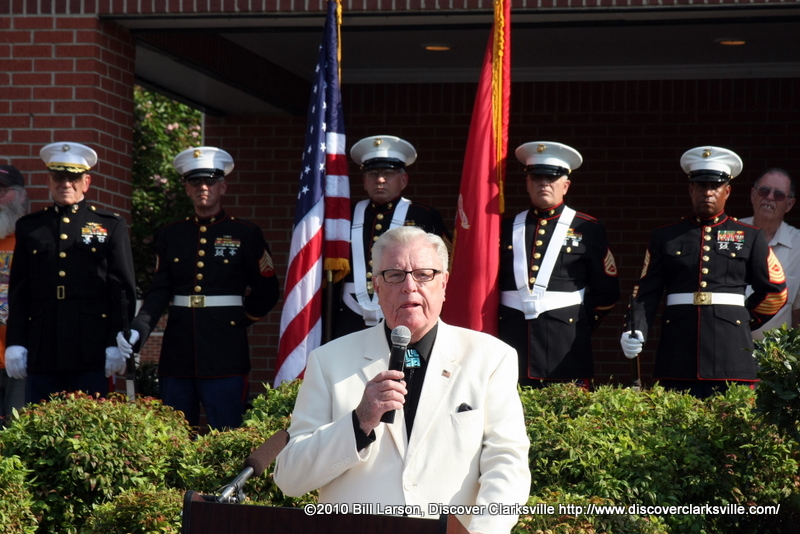The Clarksville Leaf-Chronicle led the drive to raise the funds needed to renovate the badly damaged statue. Current publisher Andrew Oppmann welcomed the crowd to the ceremony, then after the posting of the colors and the playing of the national anthem, former publisher Gene Washer took over at the podium.