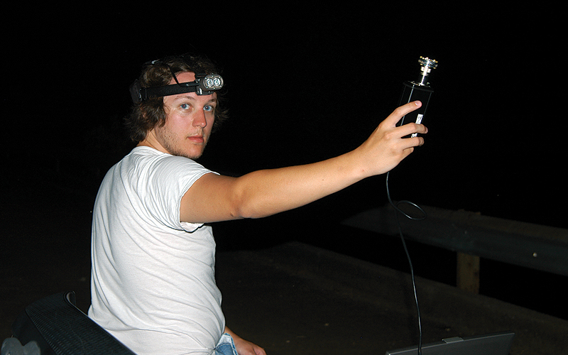 The students arrived at the LBL natural area around 8:15 that July evening, just as the sun was setting, but with temperatures as high as 100 degrees during the day, the night sky offered little relief. McCormick and Kurz unloaded their equipment, attached the microphone to the roof of their van and then drove slowly through the forest in as straight a line as possible.