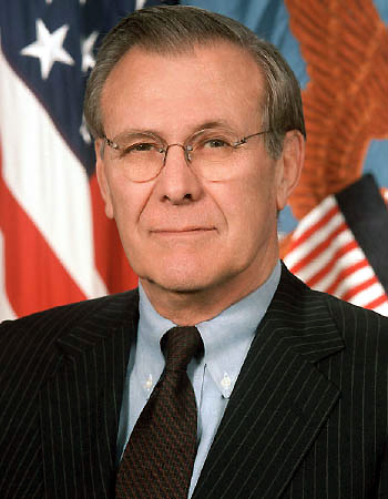 He has served as chief executive officer of two Fortune 500 companies and throughout his business career continued public service as chairman of the U.S. Ballistic Missile Threat Commission and chairman of the Commission to Assess United States National Security Space Management and Organization. He served in the U.S. Navy from 1954 to 1957. Rumsfeld earned his B.A. from Princeton University.