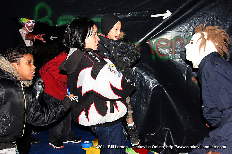 Clarksville, TN – The Kleeman Haunted Mansion opened last night to rave reviews from it’s mostly younger crowd. Well over 300 people went through the house on it’s opening night. Designed to be less scary than some of the more adult alternatives in town, the house still provided its share of chills and thrills to the attendees.