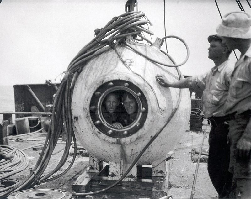 On June 6th, 1930, Beebe and Barton descended 803 feet, 134 fathoms, 245 meters. It was the first time a scientific group had explored the ocean depths in a vertical line examining the life that exists at various depths. Before the 1930 record the deepest a living man had attained was 525 feet.