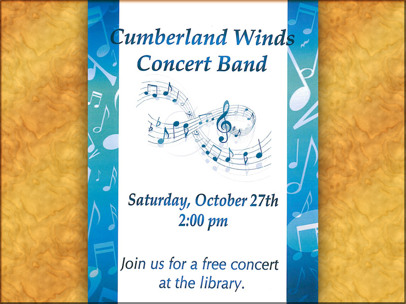 This is the second of three performances by several versions of the Cumberland Winds at the library, and will comprise the largest number of performers.