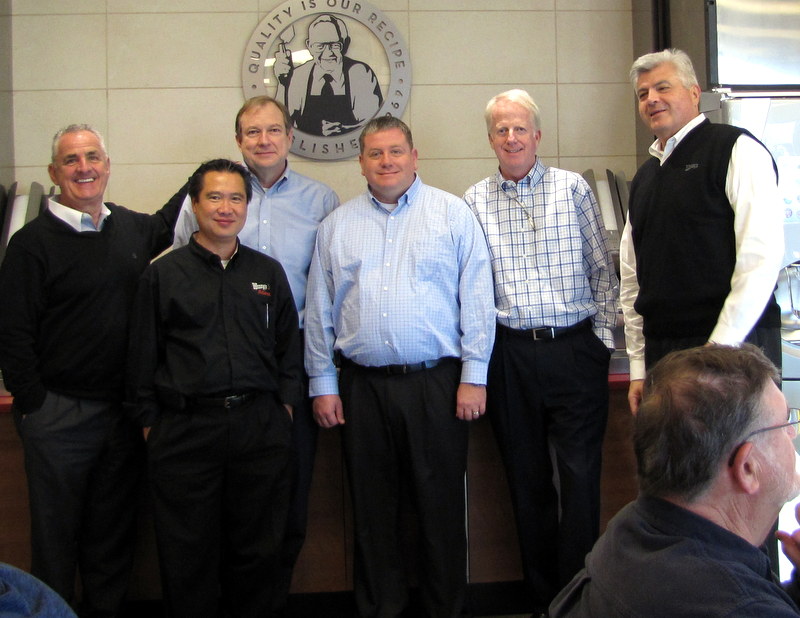 Franchisee John Hughes, Wendy’s Corporate Support Stan Campbell and Trung Pham, Franchise Operator Rich Sutton of Clarksville, Franchisee Mike O’Malley of Clarksville, and Marketer Bayne Million.