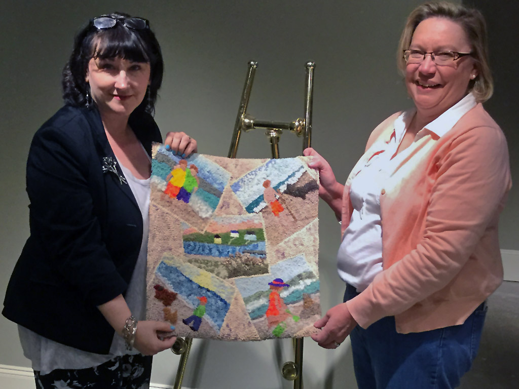 Since she lives in land-locked Tennessee, Long’s hooked rug is a collage of images from her vacations by the sea.