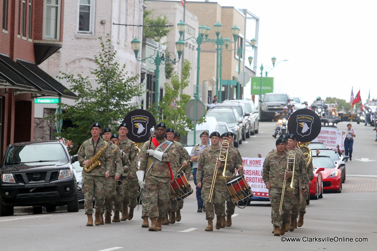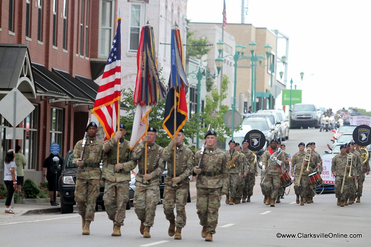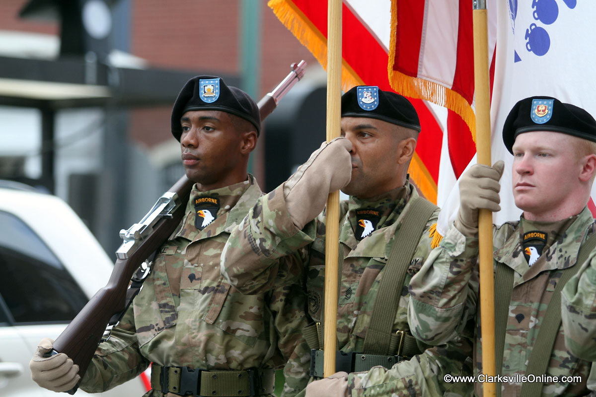 Earlier in the day, people ignored the threat of rain to line up along the parade route. There, they enjoyed color guards, music from the 101st Airborne Division (Air Assault) band, motorcycles, Corvettes, and classic cars.