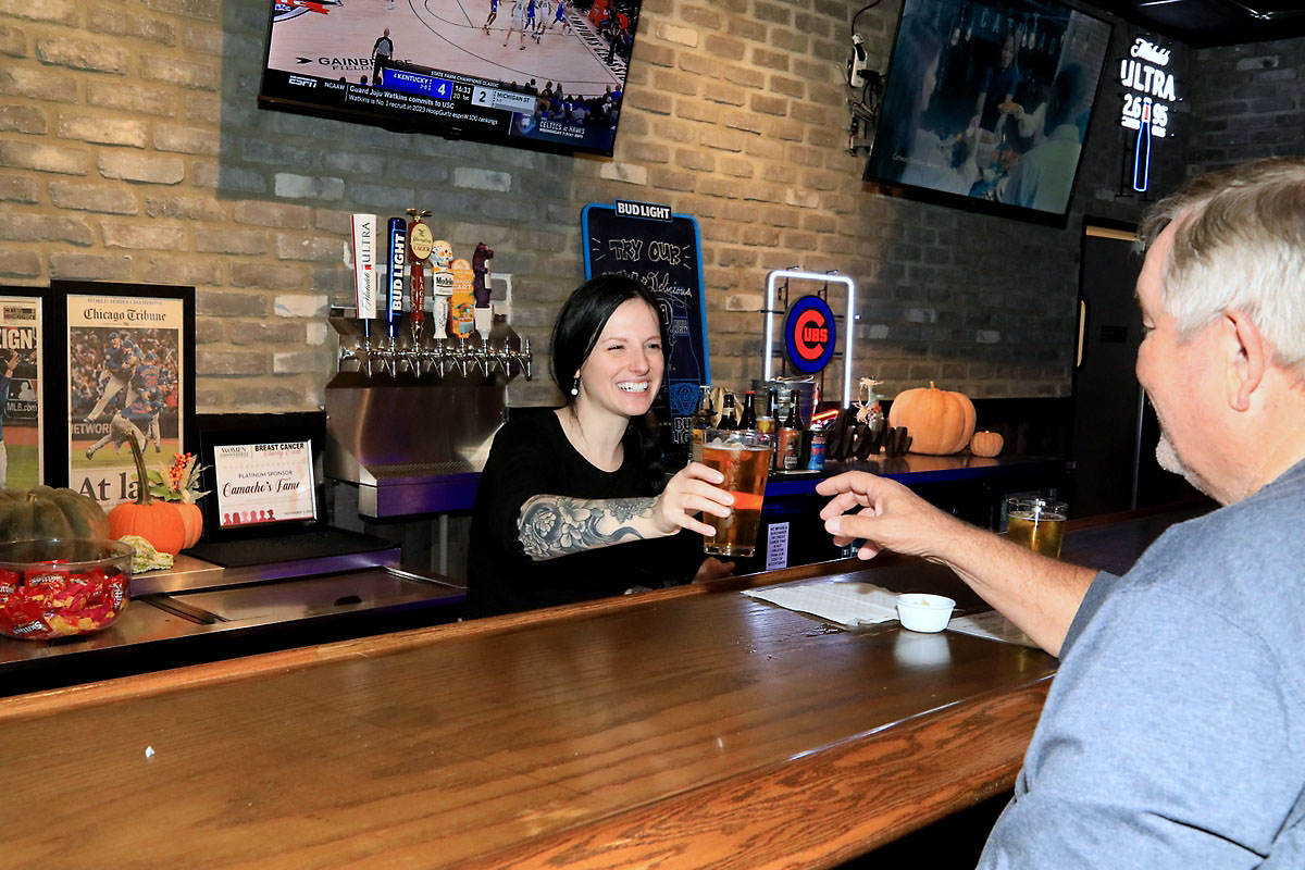 Camacho’s Famous’ Victoria Armstead serving up food and drinks to Mike Roberts. (Tony Centonze, Clarksville Online)