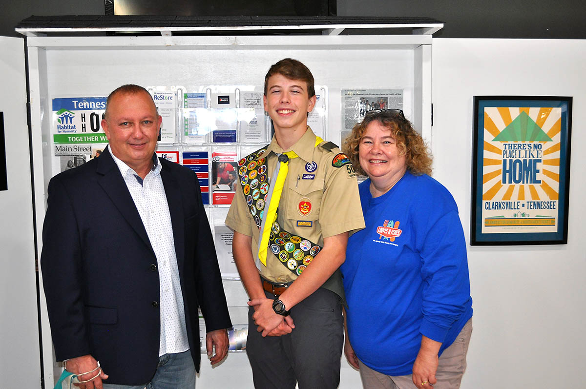 Clarksville, TN – Taydan Jackson of Clarksville, Tennessee has completed his Eagle Scout project, which is now on display through three local nonprofit social service agencies to provide service information to the public.