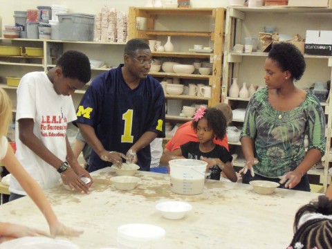 The LEAP Organization answered the invitation by sending board members, mentors, and mentees to help create the ceramic clay bowls. “This is really cool, I never thought I would get into playing with clay, but this is actually fun” commented Keynan Puckett, one of the LEAP mentees who also brought his family to join in this community service outreach event.